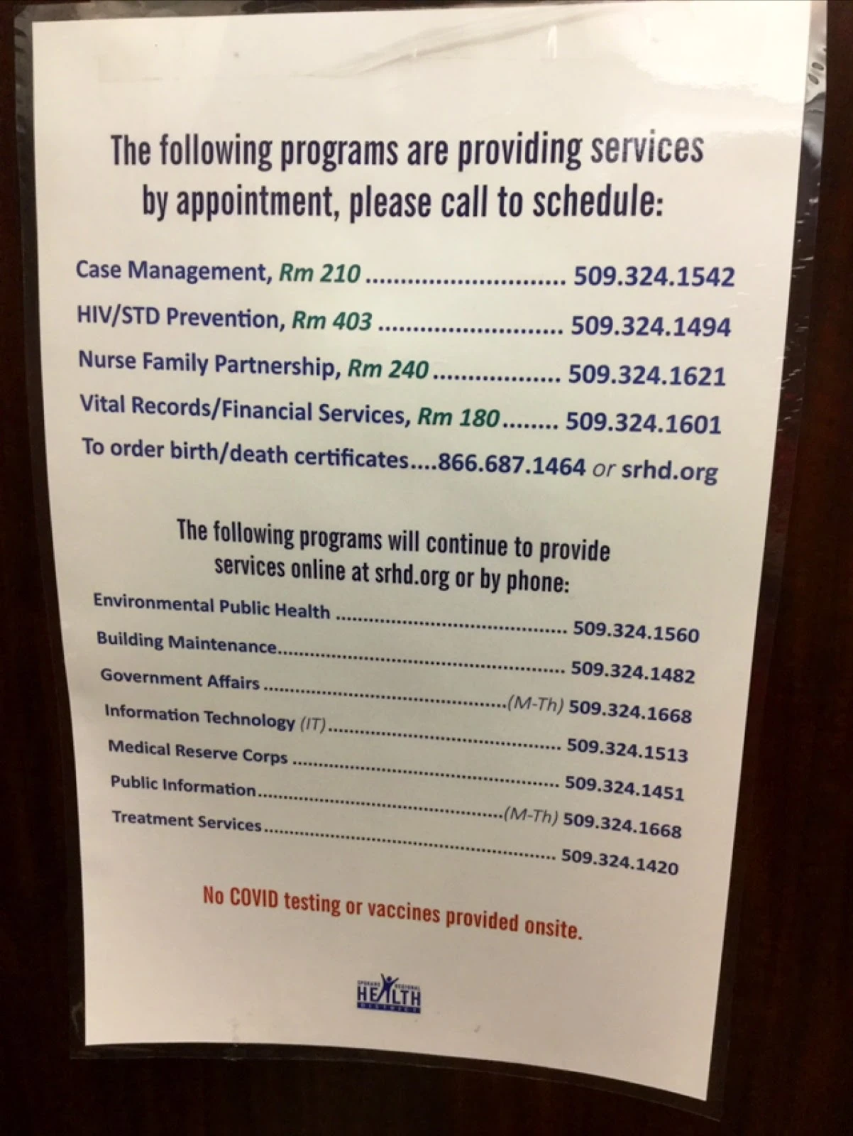 Spokane Regional Health District Information
